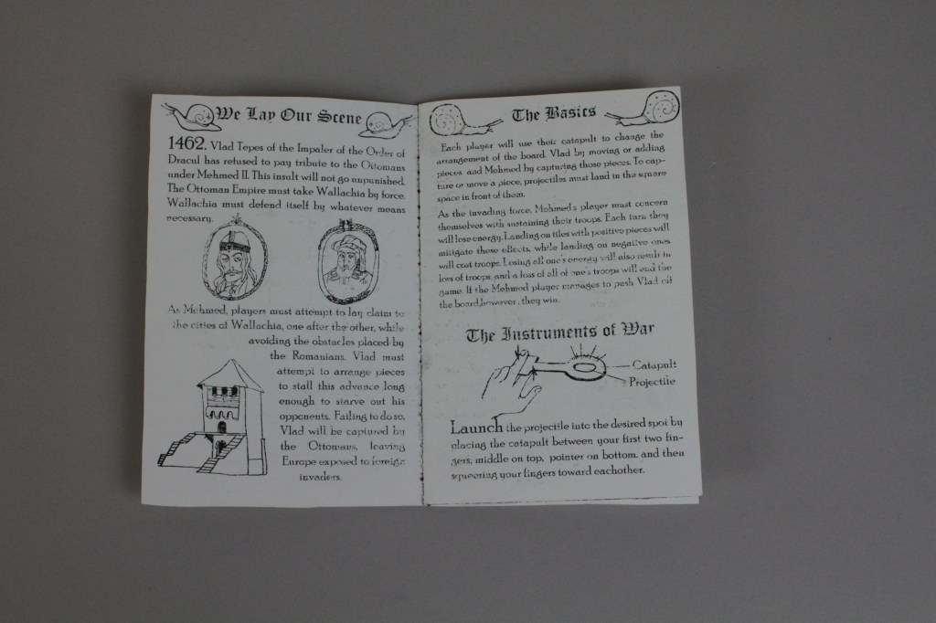 A game about the Night Attack on Târgoviște and invasion of Romania by the Ottomans which pits two players, Mehmed the Conqueror and Vlad the Impaler, against one another. Mehmed must capture territory with his catapult and avoid obstacles to subdue Vlad and conquer Romania, while Vlad must attempt to fortify his territory and starve his opponent out or drive him mad.